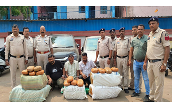 रायगढ़। छत्तीसगढ़ के रायगढ़ जिले में पुलिस ने नशीले पदार्थों की तस्करी पर एक और बड़ी कार्रवाई करते हुए तीन अंतरराज्यीय गांजा तस्करों को गिरफ्तार किया है। पुलिस ने आरोपियों के कब्जे से 105 किलो गांजा, दो लग्जरी कार और चार मोबाइल फोन समेत कुल 44.85 लाख रुपये की अवैध सामग्री जब्त की है।