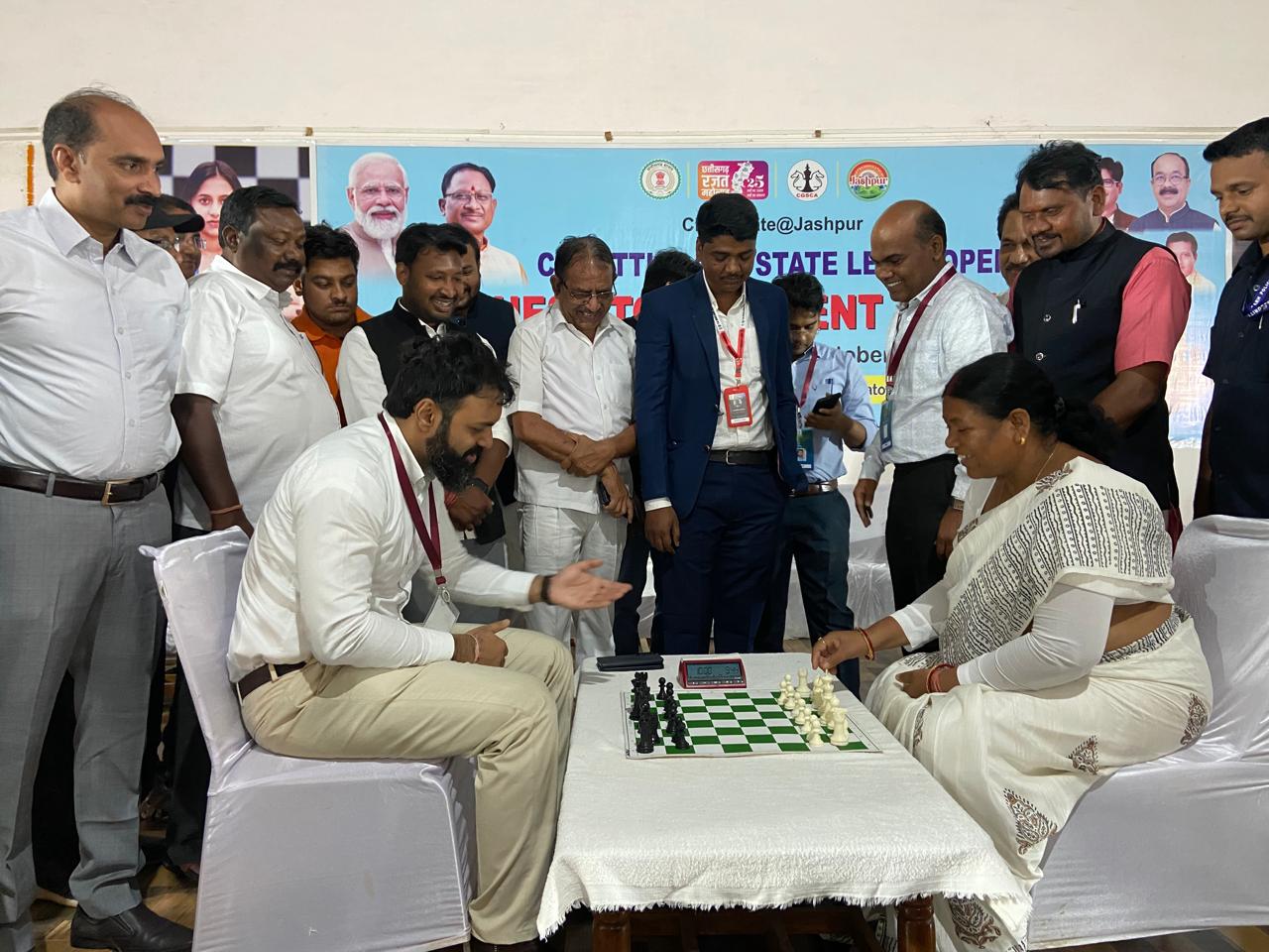 विधायक रायमुनि भगत और कलेक्टर रोहित व्यास ने शतरंज खेलकर टूर्नामेंट की औपचारिक शुरुआत की।