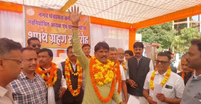 बगीचा नगर पंचायत में भाजपा के दिनेश शर्मा के सिर पर पहनाया उपाध्यक्ष का ताज