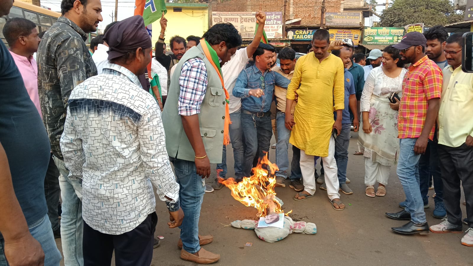 भारतीय जनता पार्टी अनुसूचित जनजाति मोर्चा द्वारा मंगलवार को जशपुर बस स्टैंड में भारत की महामहिम राष्ट्रपति श्रीमती द्रौपदी मुर्मू के कथित अपमान के विरोध में पश्चिम बंगाल की मुख्यमंत्री श्रीमती ममता बनर्जी के खिलाफ जोरदार विरोध प्रदर्शन किया गया। इस दौरान कार्यकर्ताओं ने ममता बनर्जी का पुतला दहन कर अपना आक्रोश व्यक्त किया।