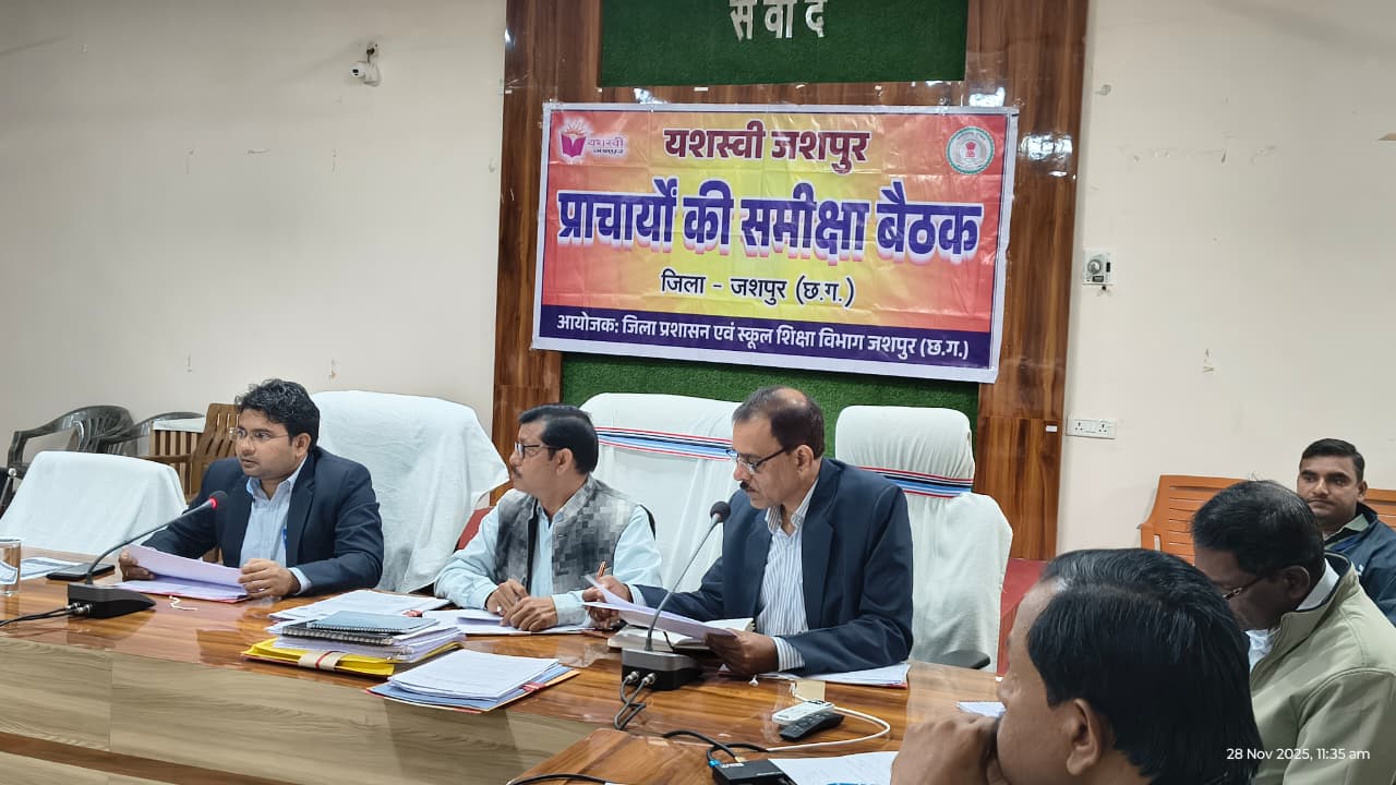 यशस्वी जशपुर कार्यक्रम के तहत् सीईओ अभिषेक कुमार ने जिला पंचायत सभाकक्ष में सभी बीईओ,एबीईओ और जिले के समस्त शासकीय हाई व हायर सेकेंडरी विद्यालयों के प्राचार्यों की बैठक में परीक्षा परिणाम, पाठ्यक्रम पूर्णता, कक्षा दसवीं और बारहवीं के कम अच्छे बच्चों और मेरिट में आने वाले विद्यार्थियों , जेईई और नीट की तैयारी, विद्यालय में कराए जा रहे हैं प्रयोगिक कार्यों, विद्यार्थियों की उपस्थिति और विद्यालयों की मॉनिटरिंग की गहन समीक्षा की।