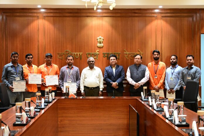 रेल परिचालन में संरक्षा दक्षिण पूर्व मध्य रेलवे की सर्वोच्च प्राथमिकता है । सजगता एवं बेहतर संरक्षा कार्य में सहभागिता निभाने वाले रेल संरक्षा के सजग प्रहरी कर्मचारियों का सम्मान महाप्रबंधक, दक्षिण पूर्व मध्य रेलवे के द्वारा हर माह आयोजित संरक्षा बैठक के दौरान किया जाता है । *इसी कड़ी में आज दिनांक 18 फरवरी, 2026 को दक्षिण पूर्व मध्य रेलवे में कार्यरत संरक्षा कोटि के 07 कर्मचारियो को उनके उत्कृष्ट एवं सराहनीय संरक्षा संबंधी कार्य निष्पादन के लिए महाप्रबंधक श्री तरुण प्रकाश के द्वारा सम्मानित किया गया ।*