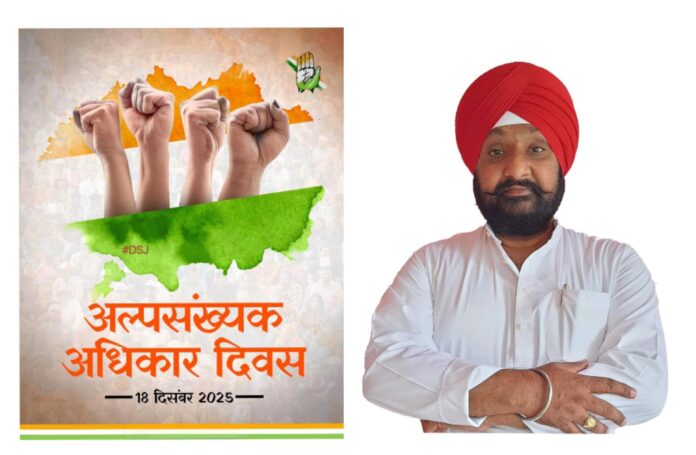 सामाजिक न्याय,प आपसी सद्भाव और संवैधानिक मूल्यों की रक्षा के लिए हमारा संकल्प सतत, स्पष्ट और अडिग रहेगा यह विचार अल्पसंख्यक कांग्रेस परिवार के वरिष्ठ नेता एवं AICC अल्पसंख्यक विभाग के राष्ट्रीय संयोजक स. दलवीर सिंह जस्सल, सुमन कुमार जैन ने अपने सहयोगी मित्रों सहित अल्पसंख्यक अधिकार दिवस के अवसर पर व्यक्त किया और सभी अल्पसंख्यक भाइयों को हार्दिक-हार्दिक शुभकामनाएं व्यक्त की