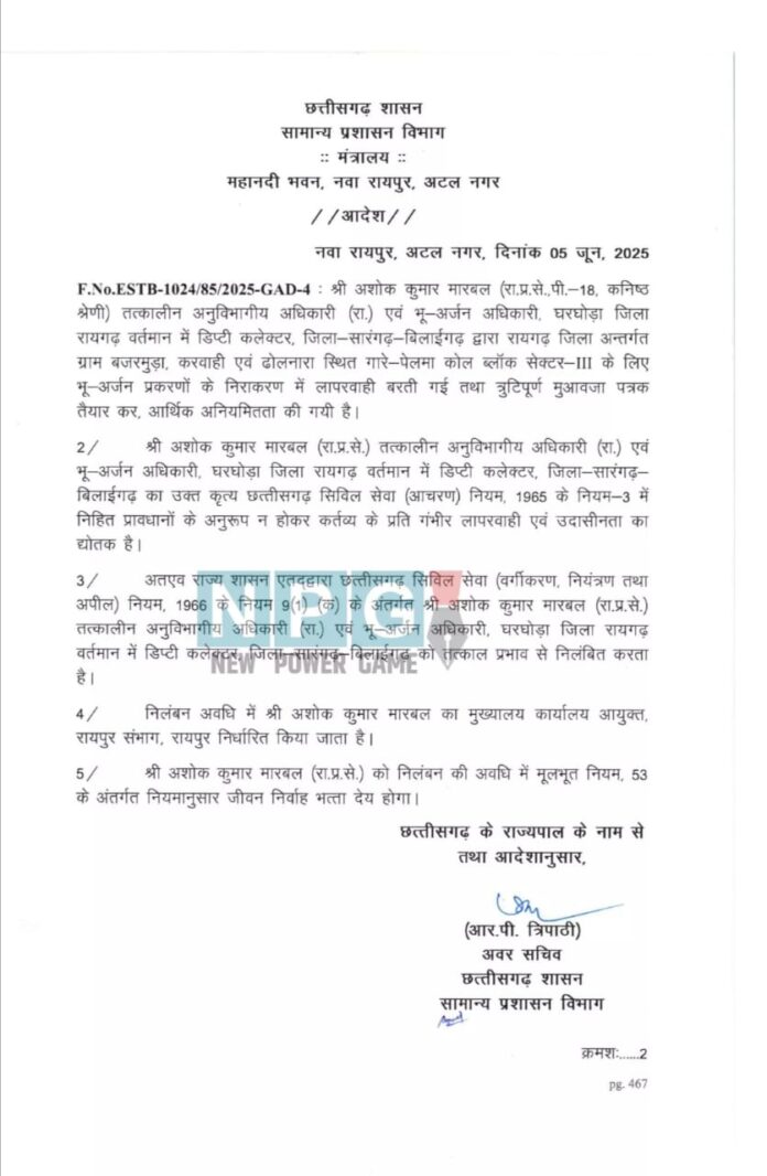 कलेक्टर रायगढ़ से दुर्गेश शर्मा ने वर्तमान में पदस्थ घरघोड़ा एस डी एम जो इस प्रकरण पर लगातार बाधाबनकर रोड़ा अटकाने का काम कर रहें है उन पर भी कार्यवाही की मांग की है.