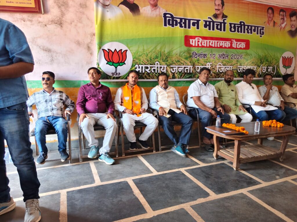 जशपुर । भारतीय जनता पार्टी किसान मोर्चा जिला जशपुर के जिला पदाधिकारियों, मण्डल अध्यक्षों एवं महामंत्रियों की परिचयात्मक बैठक गरिमामय वातावरण में संपन्न हुई।