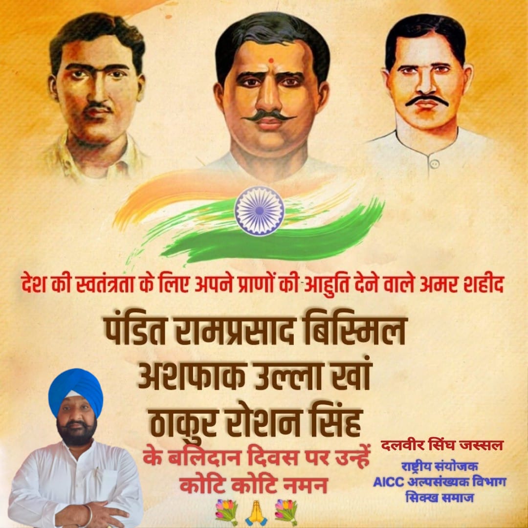 इस बलिदान दिवस पर AICC अल्पसंख्यक विभाग के राष्ट्रीय संयोजक सिक्ख समाज के स.दलवीर सिंघ जस्सल एवं कांग्रेस के वरिष्ठ नेता सुमन कुमार जैन द्वारा श्रद्धा सुमन अर्पित करते हुए कहा कि ऐसे महान क्रांतिकारियों के अदम्य साहस, त्याग और राष्ट्रप्रेम व देश की आजादी के लिए अपने प्राण तक न्यौछावर करने वाले सच्चे देश प्रेमियों को पूरा देश याद रखेगा ।