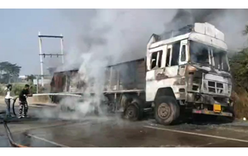 बिलासपुर। जांजगीर–बिलासपुर हाईवे पर उस समय हड़कंप मच गया, जब चलती ट्रक में अचानक आग लग गई. बताया जा रहा है कि ट्रक में ब्लास्ट होने के बाद आग भड़की, जिससे वाहन पूरी तरह जलकर खाक हो गया. घटना की सूचना मिलते ही दमकल और पुलिस की टीम मौके पर पहुंची और आग पर काबू पाने का प्रयास किया.
