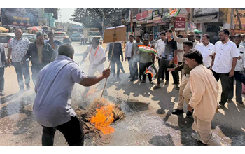 गरियाबंद। जिले में स्वीकृत सैनिक स्कूल को जिला मुख्यालय से बाहर ले जाने और गलत जानकारी शासन को भेजने पर भाजपा के बाद अब कांग्रेस के निशाने पर जिला शिक्षा अधिकारी (डीईओ) हैं. कांग्रेसी नेताओं और कार्यकर्ताओं ने आज तिरंगा चौक पर जोरदार प्रदर्शन करते हुए डीईओ का पुतला दहन कर प्रशासन के खिलाफ जमकर नारेबाजी की.