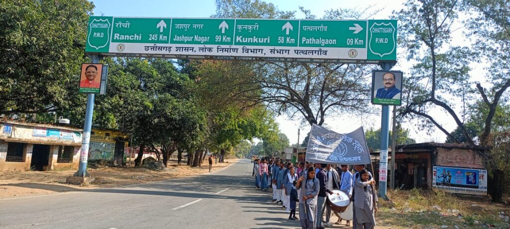 फुलेता चौक पत्थलगांव स्थित आदर्श शारदा पब्लिक स्कूल में स्वामी विवेकानंद जी की जयंती धूम धाम से मनाई गई,बच्चों द्वारा विद्यालय से चौक तक रैली निकाली गई,युवा दिवस अमर रहे,विवेकानंद जी की जय,सहित अनेक नारों से गूंज होती रही,